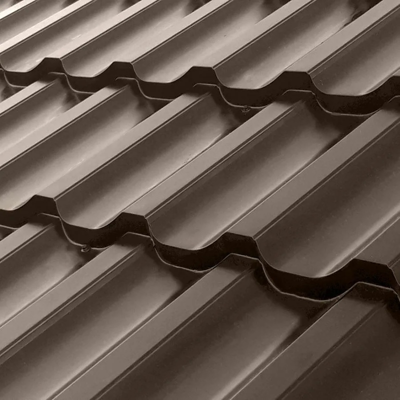 Покрытие PURETAN® — это инновационная разработка на основе полиуретана, усиленного полиамидными гранулами. Оно обеспечивает повышенную стойкость к царапинам и истиранию, что особенно важно в регионах с интенсивными осадками или ветрами. Толщина слоя составляет 35 мкм, что гарантирует защиту от коррозии на протяжении многих лет. Цвет RR 32 — насыщенный темно-коричневый оттенок, имитирующий натуральную глиняную черепицу, с матовой текстурой для снижения бликов.