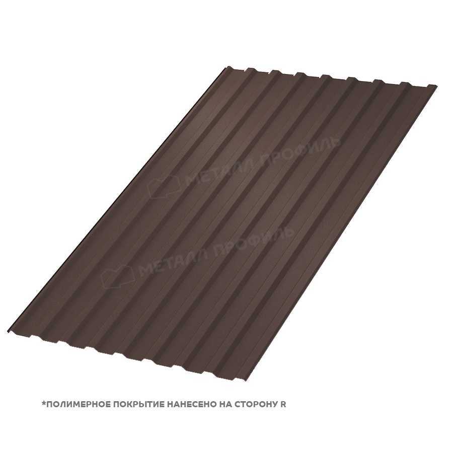 Профлист МП-20 с толщиной 0,45 мм и покрытием Полиэстер в цвете RR 32 (темно-коричневый) на стороне A представляет собой надежный материал от компании Металл Профиль. Он идеален для обустройства кровель, фасадов и ограждений, сочетая прочность, эстетику и долговечность. Этот вариант обеспечивает отличную защиту от коррозии и подходит для различных климатических условий.